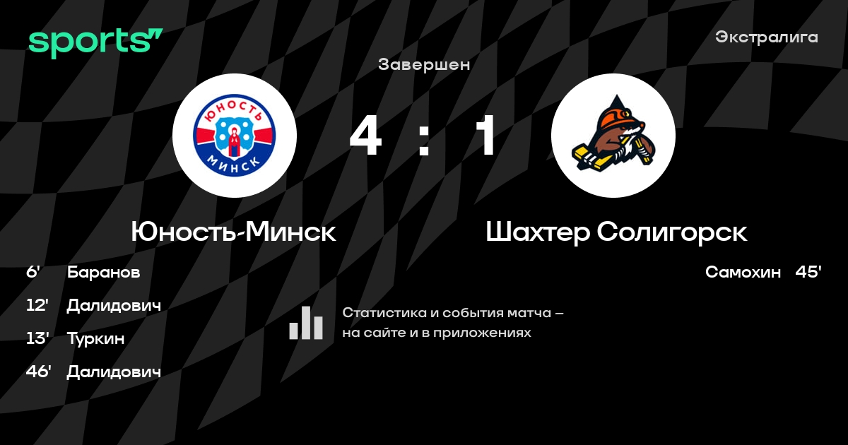 В прошедшем матче в рамках турнира Экстралига состоялась встреча команд Юность-Минск - Шахтер Солигорск в городе Minsk на стадионе Yunost Minsk Arena