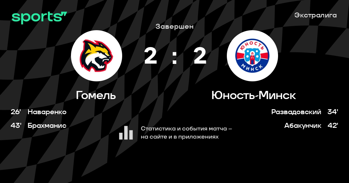 В прошедшем матче в рамках турнира Экстралига состоялась встреча команд Гомель - Юность-Минск в городе Гомель (Беларусь) на стадионе Ледовый дворец Гомель (вместимость - 2700)