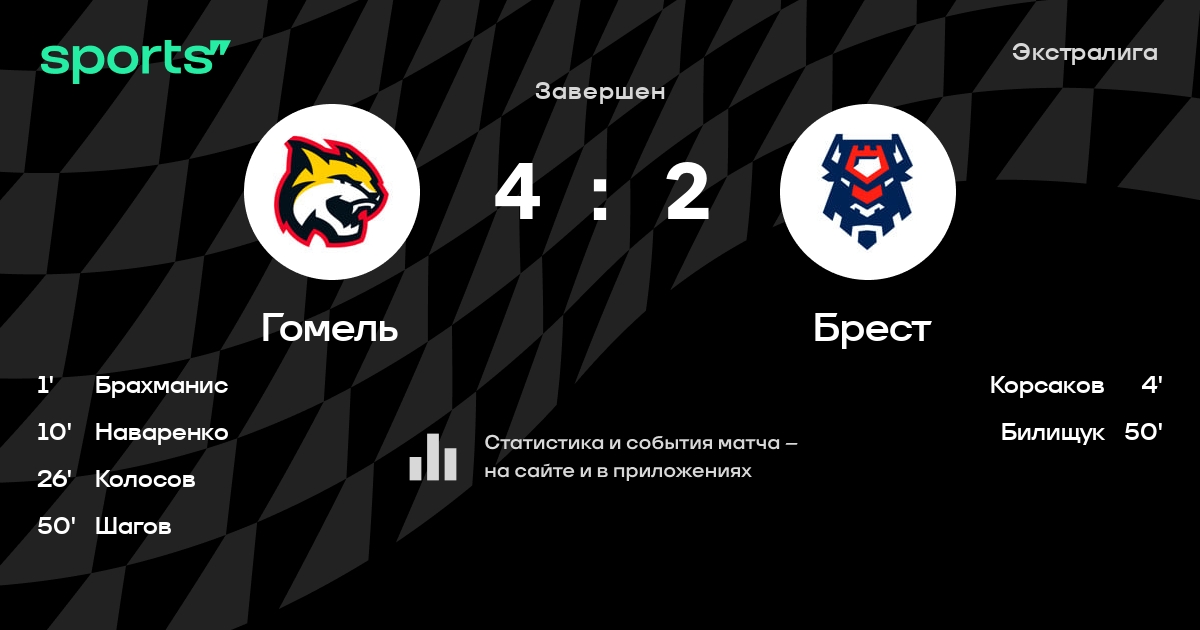 В прошедшем матче в рамках турнира Экстралига состоялась встреча команд Гомель - Брест в городе Гомель (Беларусь) на стадионе Ледовый дворец Гомель (вместимость - 2700)