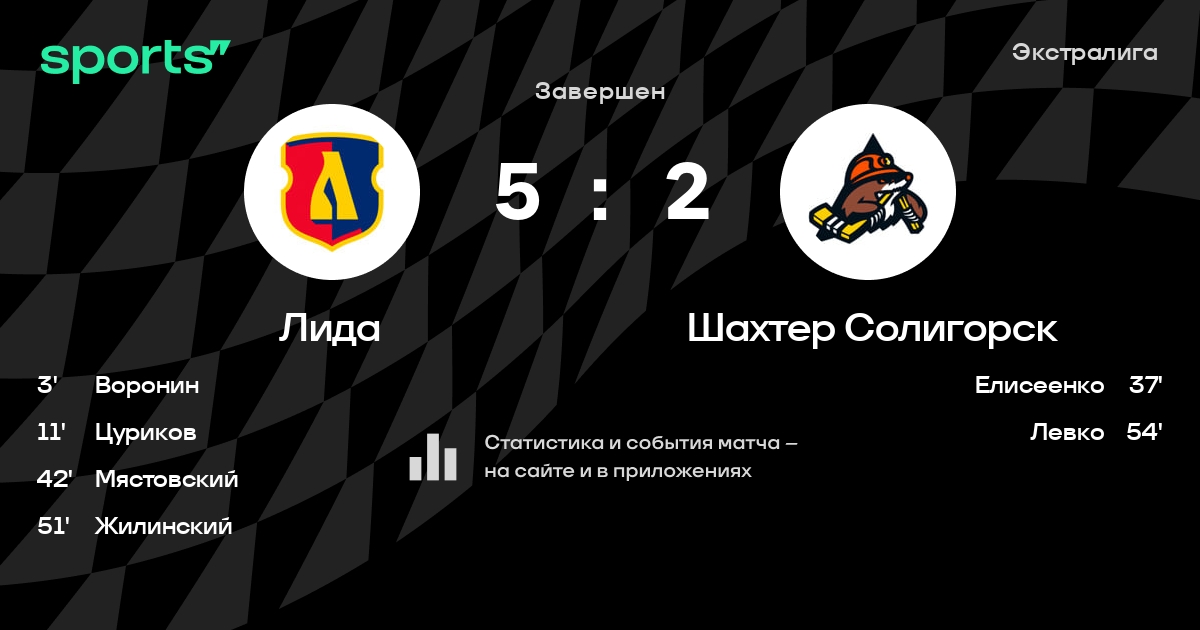 В прошедшем матче в рамках турнира Экстралига состоялась встреча команд Лида - Шахтер Солигорск в городе Лида (Беларусь) на стадионе Ледовый дворец спорта Лида (вместимость - 790)