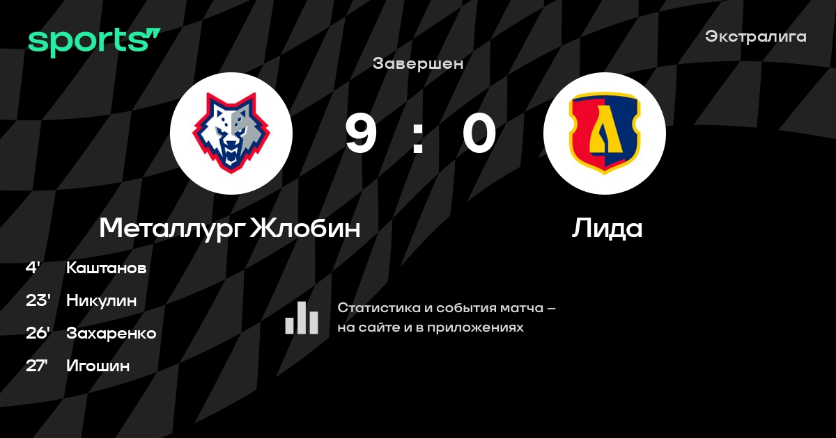 В прошедшем матче в рамках турнира Экстралига состоялась встреча команд Металлург Жлобин - Лида в городе Жлобин (Беларусь) на стадионе Ледовый дворец Металлург (вместимость - 2018)