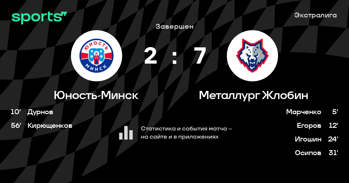 В прошедшем матче в рамках турнира Экстралига состоялась встреча команд Юность-Минск - Металлург Жлобин в городе Minsk на стадионе Yunost Minsk Arena