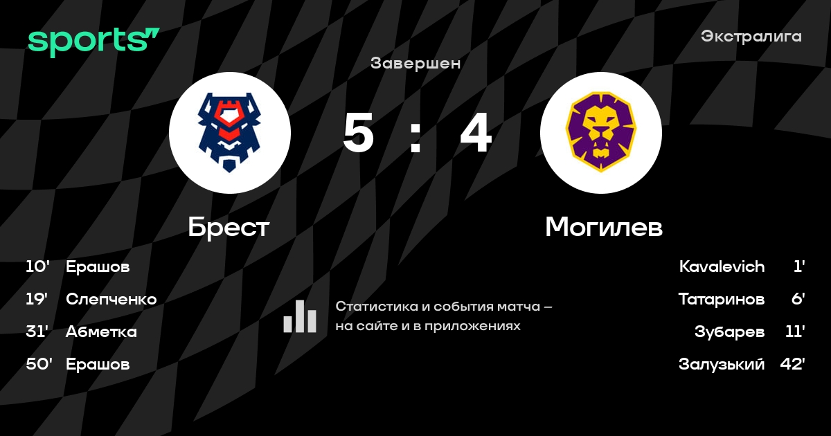 В прошедшем матче в рамках турнира Экстралига состоялась встреча команд Брест - Могилев в городе Brest на стадионе Rinkla Stadium