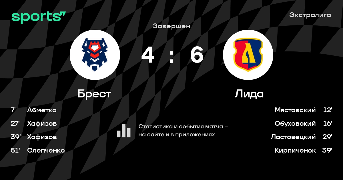 В прошедшем матче в рамках турнира Экстралига состоялась встреча команд Брест - Лида в городе Brest на стадионе Rinkla Stadium
