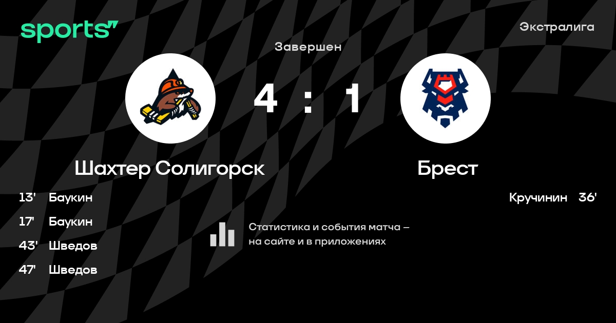 В прошедшем матче в рамках турнира Экстралига состоялась встреча команд Шахтер Солигорск - Брест в городе Солигорск (Беларусь) на стадионе Ледовый дворец спорта Солигорск (вместимость - 1800)