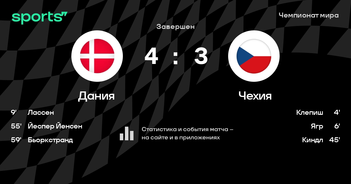 В прошедшем матче в рамках турнира Чемпионат мира (5-й тур) состоялась встреча команд Дания - Чехия в городе Минск (Беларусь) на стадионе Чижовка-Арена (вместимость - 9487)