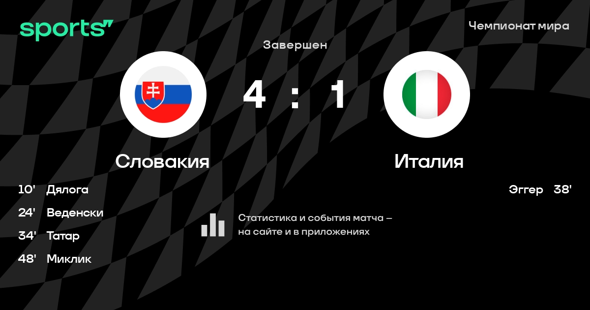 В прошедшем матче в рамках турнира Чемпионат мира (6-й тур) состоялась встреча команд Словакия - Италия в городе Минск (Беларусь) на стадионе Чижовка-Арена (вместимость - 9487)