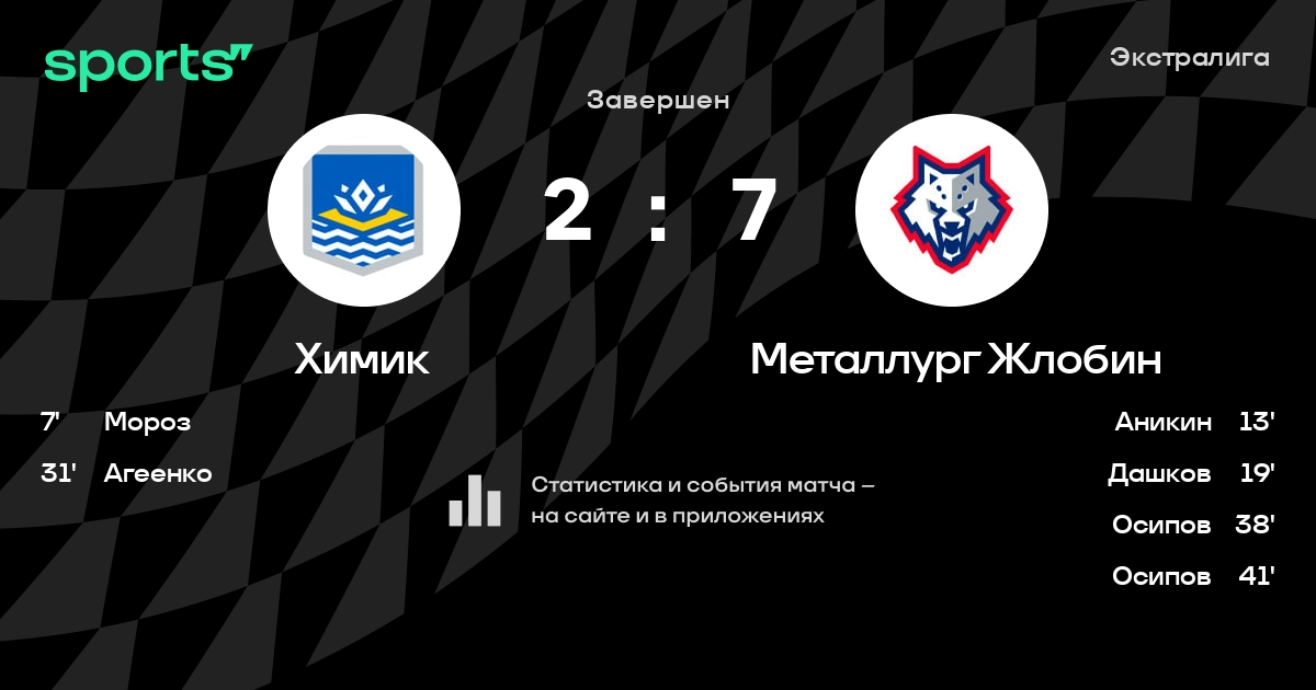 В прошедшем матче в рамках турнира Экстралига состоялась встреча команд Химик - Металлург Жлобин в городе Новополоцк (Беларусь) на стадионе Дворец культуры и спорта (вместимость - 1200)