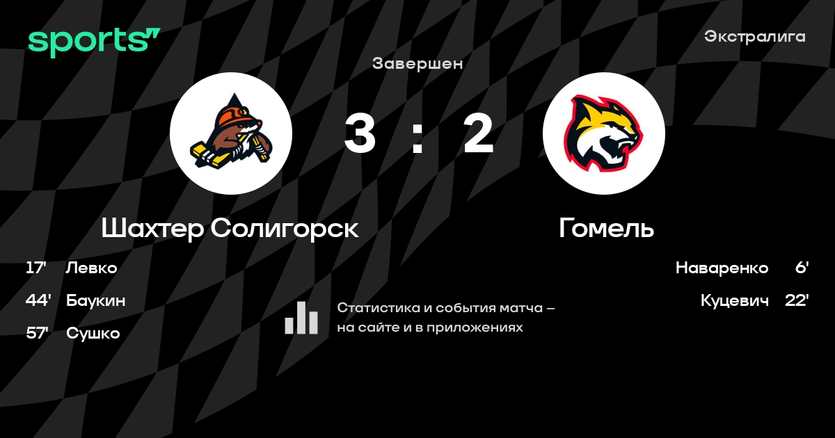 В прошедшем матче в рамках турнира Экстралига состоялась встреча команд Шахтер Солигорск - Гомель в городе Солигорск (Беларусь) на стадионе Ледовый дворец спорта Солигорск (вместимость - 1800)