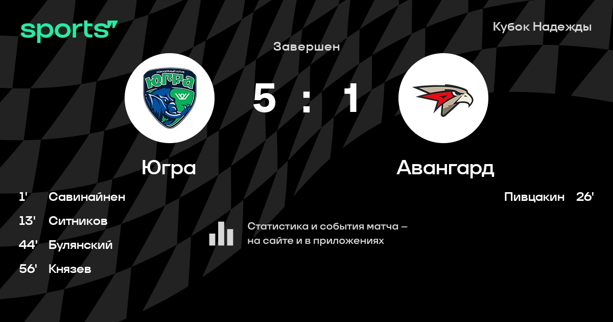 В прошедшем матче в рамках турнира Кубок Надежды (Кубок Надежды. Четвертьфинал) состоялась встреча команд Югра - Авангард в городе Ханты-Мансийск (Россия) на стадионе Арена-Югра (вместимость - 5500)