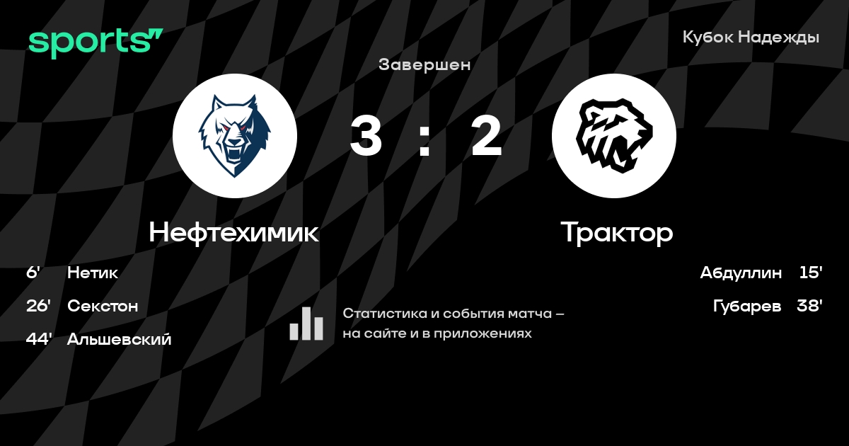 В прошедшем матче в рамках турнира Кубок Надежды (Кубок Надежды. Четвертьфинал) состоялась встреча команд Нефтехимик - Трактор в городе Нижнекамск (Россия) на стадионе Нефтехим-Арена (вместимость - 5500)