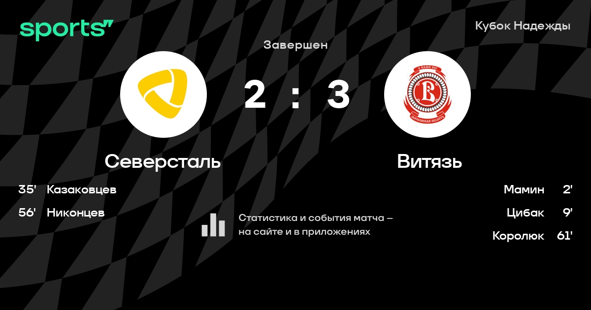 Как прошел матч, смотрите в текстовой трансляции Северсталь - Витязь на Sports.ru