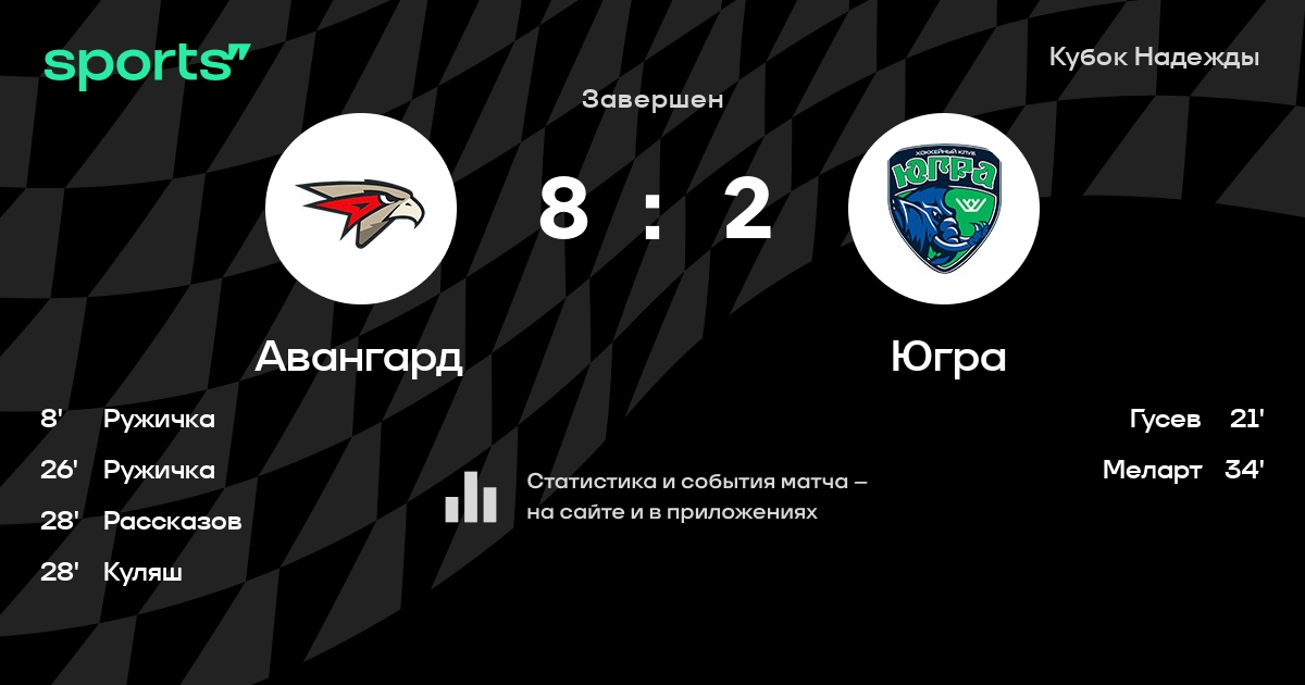 В прошедшем матче в рамках турнира Кубок Надежды (Кубок Надежды. Четвертьфинал) состоялась встреча команд Авангард - Югра в городе Омск (Россия) на стадионе G-Drive Арена (вместимость - 12011)
