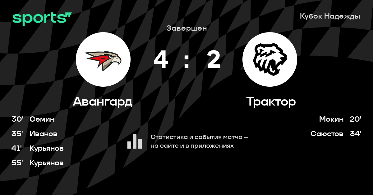 В прошедшем матче в рамках турнира Кубок Надежды (Кубок Надежды. Полуфинал) состоялась встреча команд Авангард - Трактор в городе Омск (Россия) на стадионе G-Drive Арена (вместимость - 12011)
