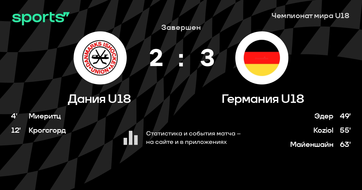 В прошедшем матче в рамках турнира Чемпионат мира U18 (Турнир на выбывание) состоялась встреча команд Дания U18 - Германия U18 в городе Imatra на стадионе Imatran J??halli