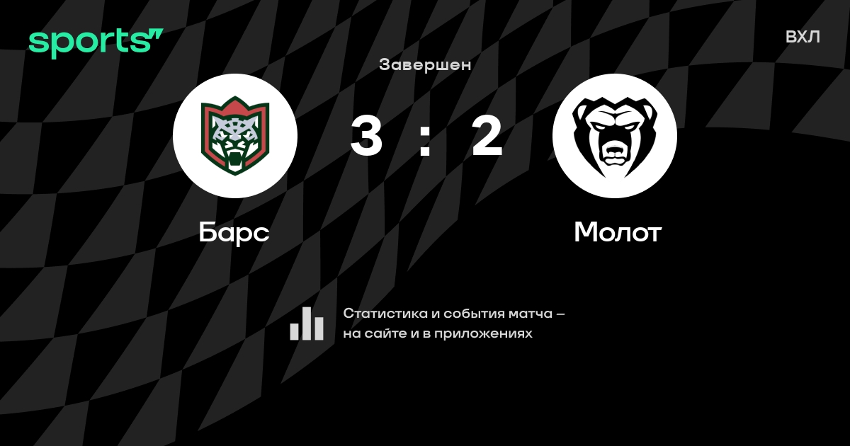 В прошедшем матче в рамках турнира ВХЛ состоялась встреча команд Барс - Молот