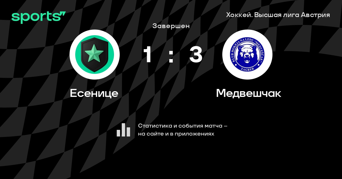 В прошедшем матче в рамках турнира Хоккей. Высшая лига Австрия состоялась встреча команд Есенице - Медвешчак