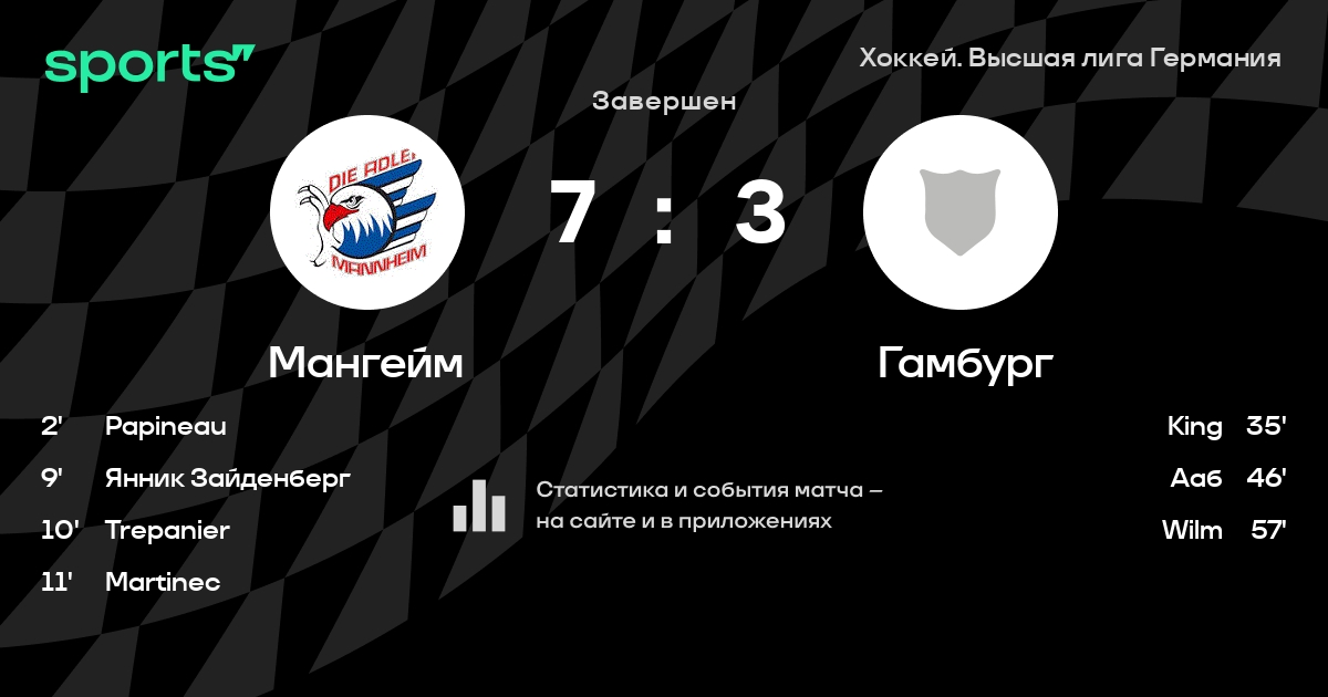 В прошедшем матче в рамках турнира Хоккей. Высшая лига Германия состоялась встреча команд Мангейм - Гамбург