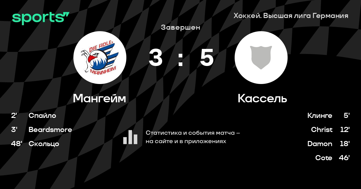 В прошедшем матче в рамках турнира Хоккей. Высшая лига Германия состоялась встреча команд Мангейм - Кассель
