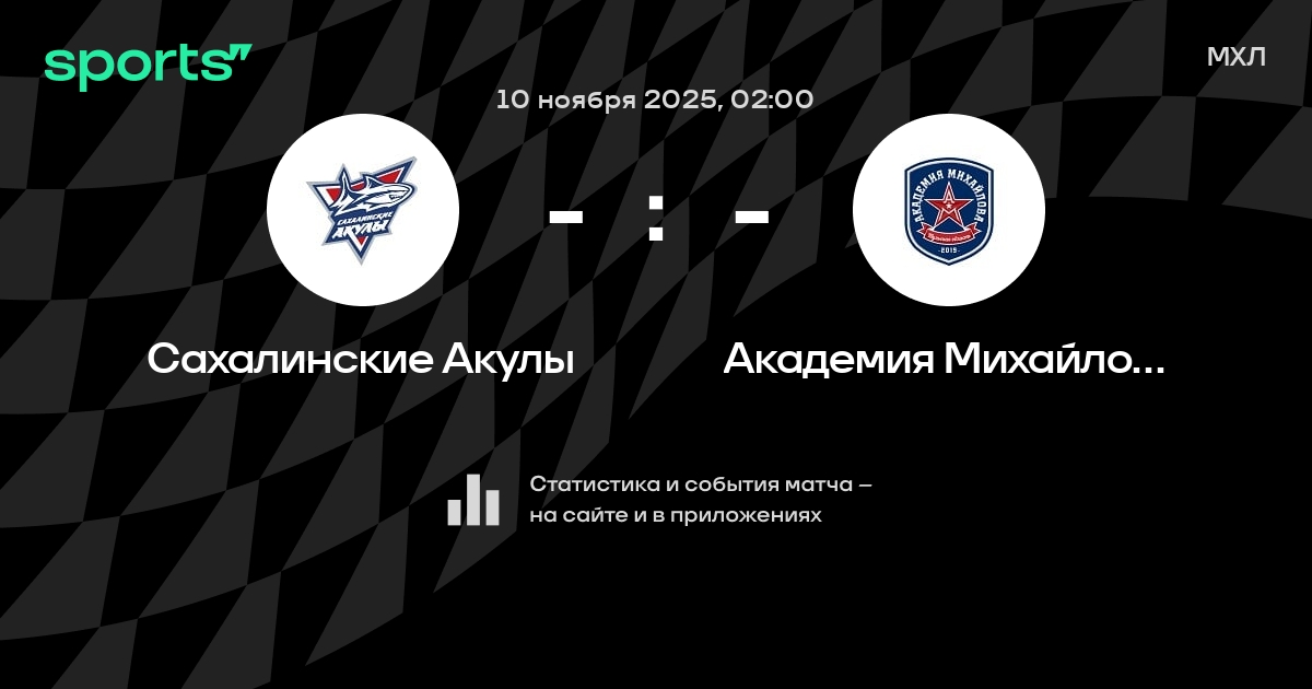 В предстоящем матче в рамках турнира МХЛ пройдет встреча команд Сахалинские Акулы - Академия Михайлова в городе на стадионе Arena City Yuzhno-Sakhalinsk.