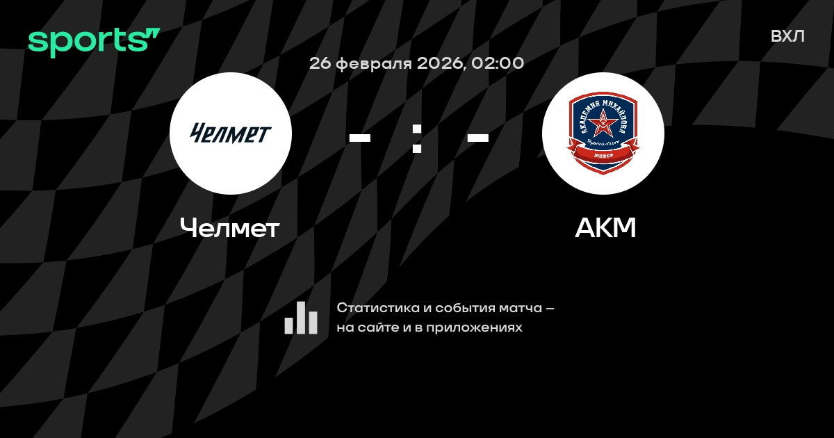 В предстоящем матче в рамках турнира ВХЛ пройдет встреча команд Челмет - АКМ в городе на стадионе Sports Palace Yunost.