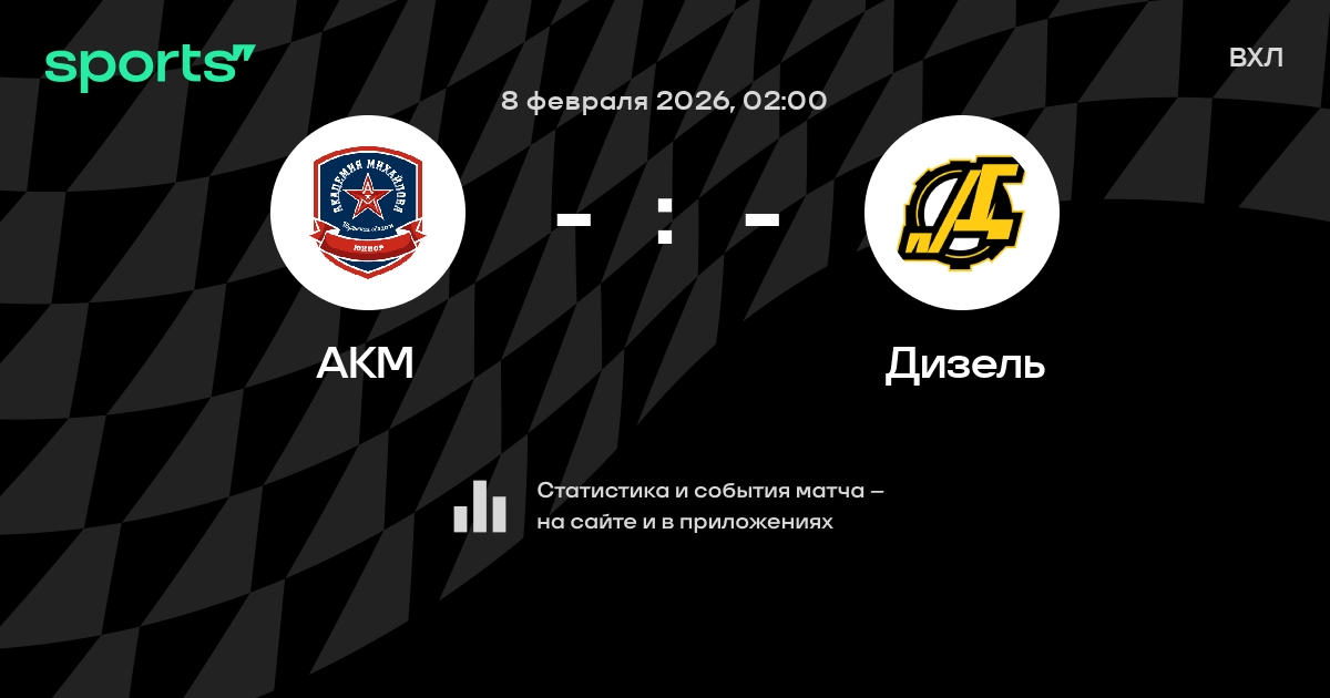 В предстоящем матче в рамках турнира ВХЛ пройдет встреча команд АКМ - Дизель в городе на стадионе Ice Palace.