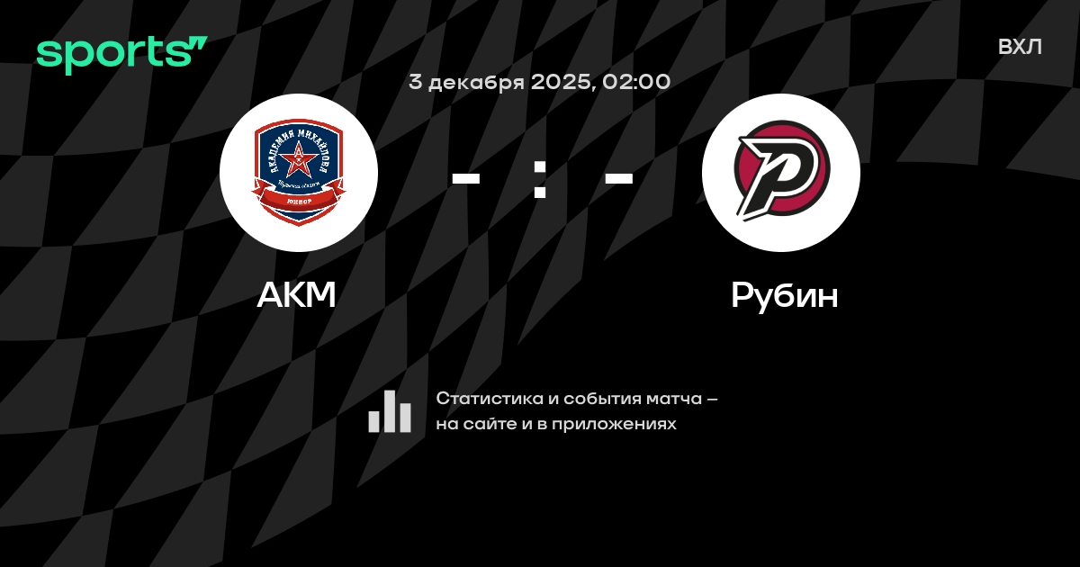 В предстоящем матче в рамках турнира ВХЛ пройдет встреча команд АКМ - Рубин в городе на стадионе Ice Palace.