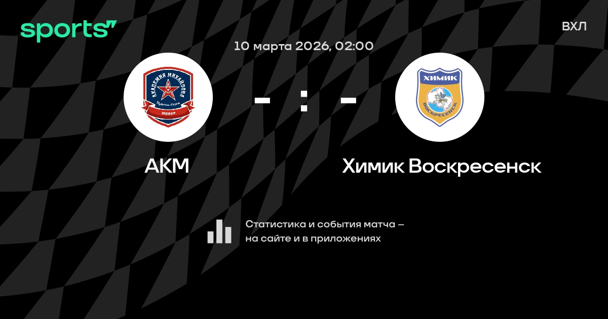 В предстоящем матче в рамках турнира ВХЛ пройдет встреча команд АКМ - Химик Воскресенск в городе на стадионе Ice Palace.