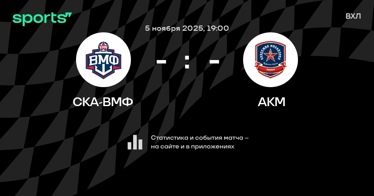 В предстоящем матче в рамках турнира ВХЛ пройдет встреча команд СКА-ВМФ - АКМ в городе на стадионе Hockey City.