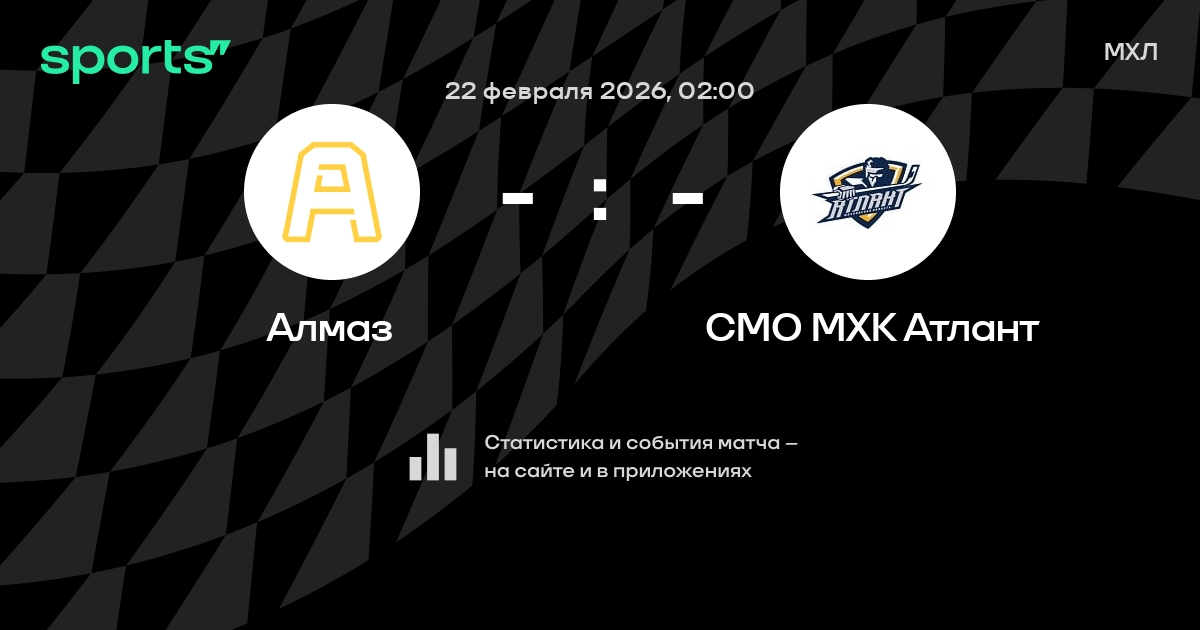 В предстоящем матче в рамках турнира МХЛ пройдет встреча команд Алмаз - СМО МХК Атлант .