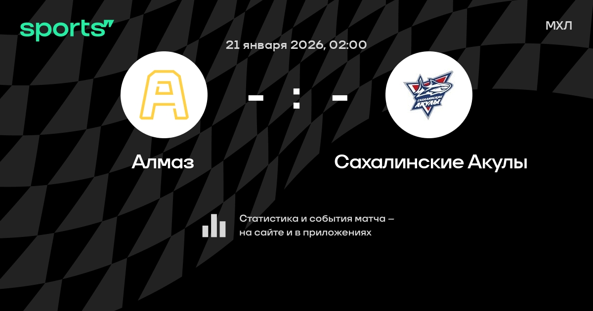 В предстоящем матче в рамках турнира МХЛ пройдет встреча команд Алмаз - Сахалинские Акулы .