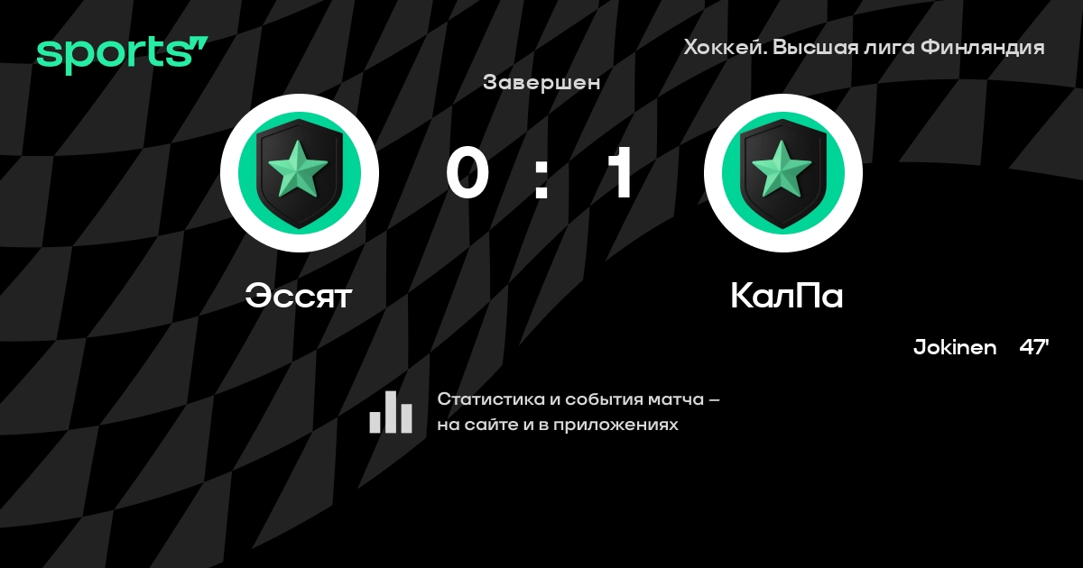 В прошедшем матче в рамках турнира Хоккей. Высшая лига Финляндия состоялась встреча команд Эссят - КалПа