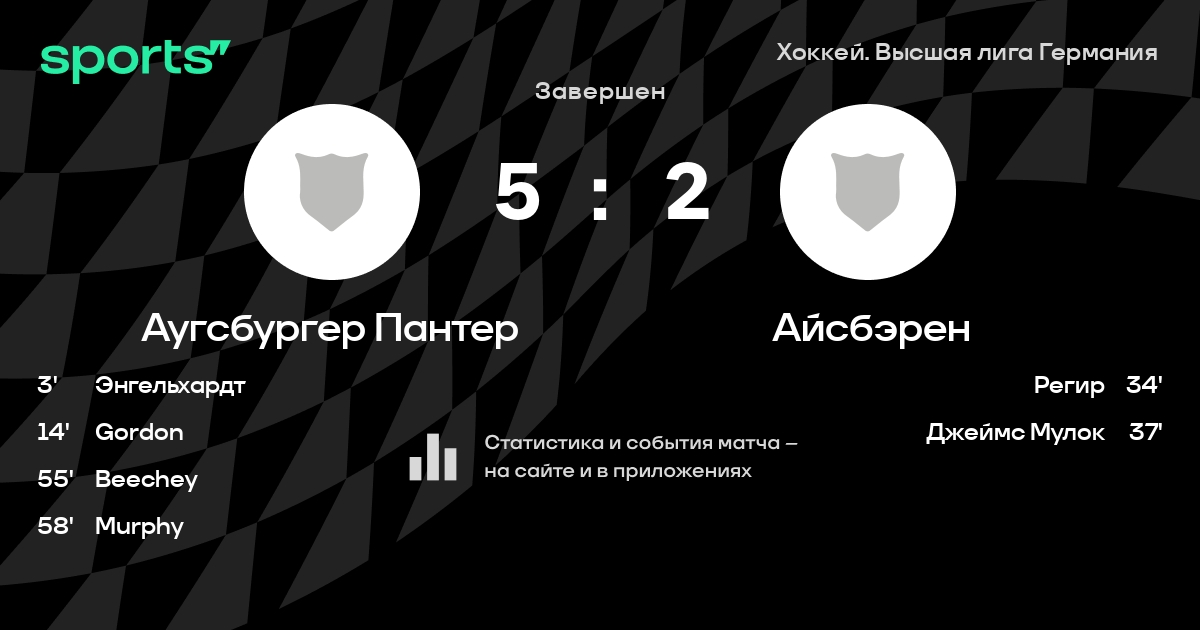 В прошедшем матче в рамках турнира Хоккей. Высшая лига Германия состоялась встреча команд Аугсбургер Пантер - Айсбэрен