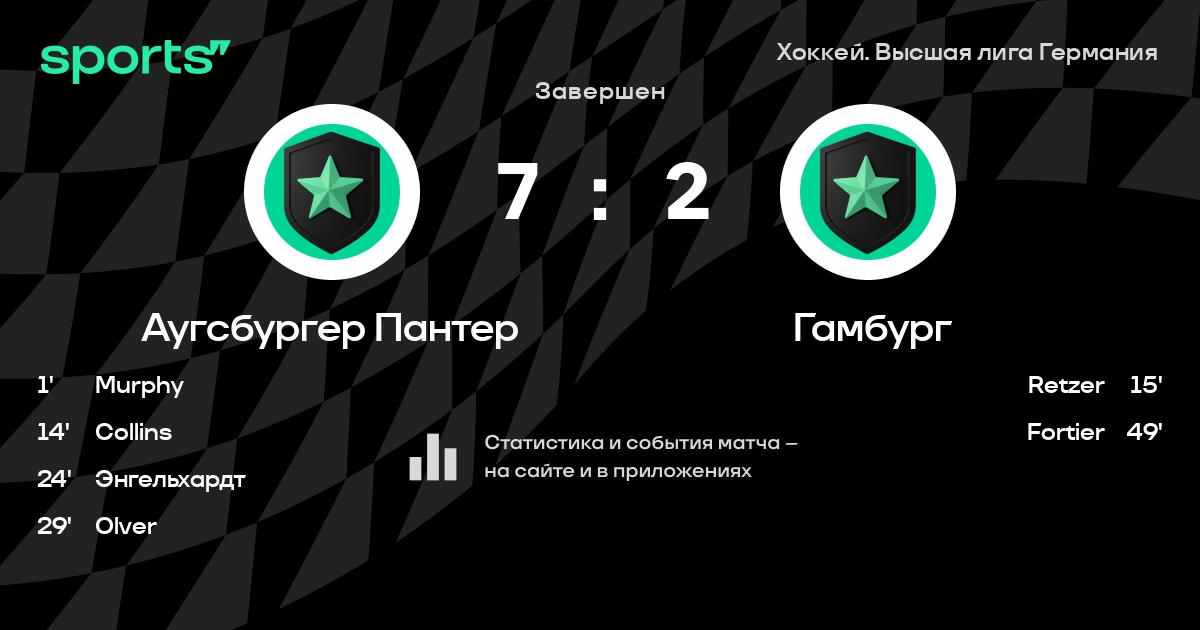 В прошедшем матче в рамках турнира Хоккей. Высшая лига Германия состоялась встреча команд Аугсбургер Пантер - Гамбург