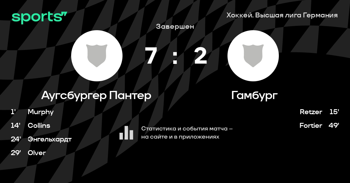 В прошедшем матче в рамках турнира Хоккей. Высшая лига Германия состоялась встреча команд Аугсбургер Пантер - Гамбург