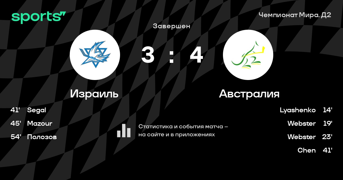 В прошедшем матче в рамках турнира Чемпионат Мира. Д2 состоялась встреча команд Израиль - Австралия в городе Belgrade на стадионе Pionir Ice Hall