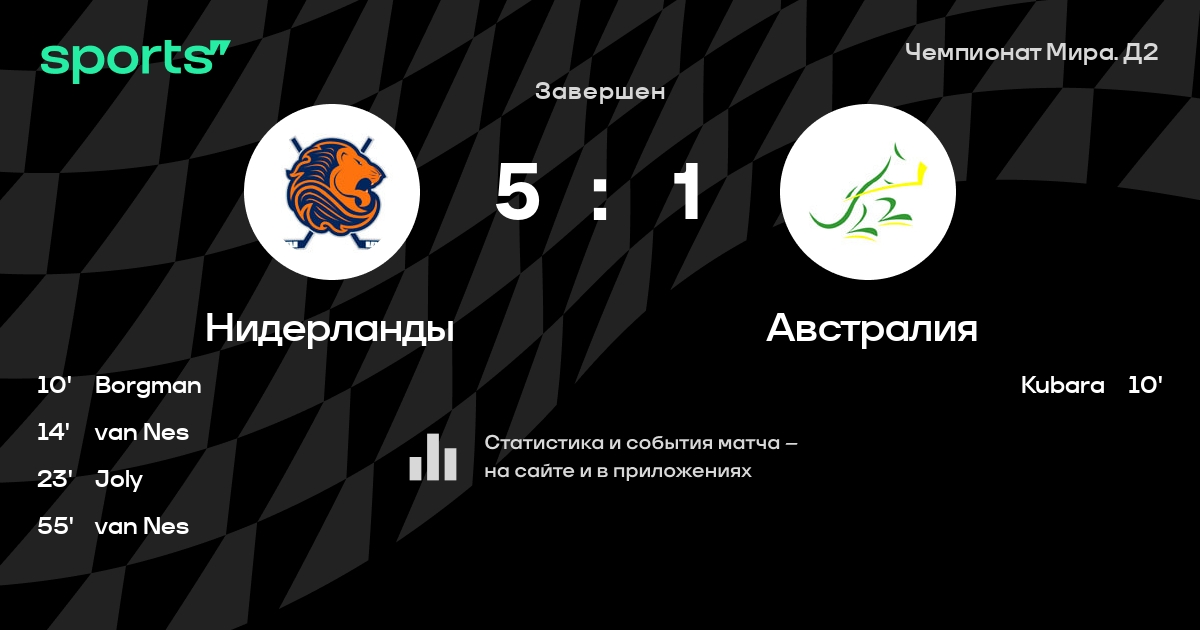 В прошедшем матче в рамках турнира Чемпионат Мира. Д2 состоялась встреча команд Нидерланды - Австралия в городе Belgrade на стадионе Pionir Ice Hall