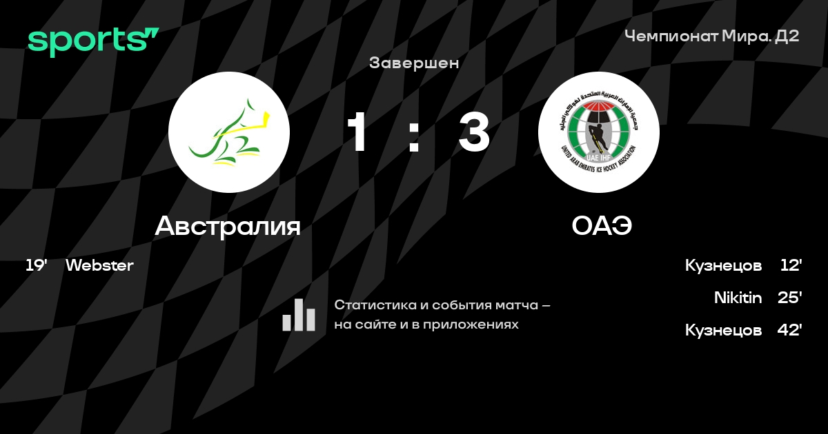 В прошедшем матче в рамках турнира Чемпионат Мира. Д2 состоялась встреча команд Австралия - ОАЭ в городе Belgrade на стадионе Pionir Ice Hall