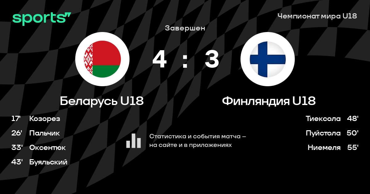 Как прошел матч, смотрите в текстовой трансляции Беларусь U18 - Финляндия U18 на Sports.ru