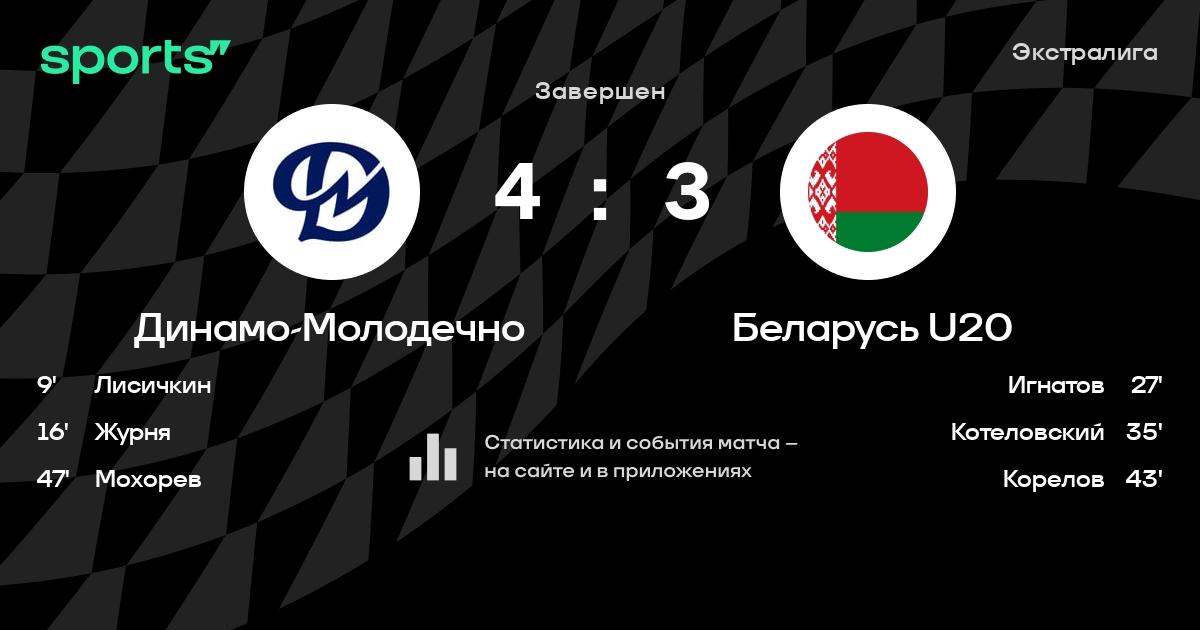 В прошедшем матче в рамках турнира Экстралига состоялась встреча команд Динамо-Молодечно - Беларусь U20 в городе Молодечно (Беларусь) на стадионе Ледовый дворец Молодечно (вместимость - 2000)