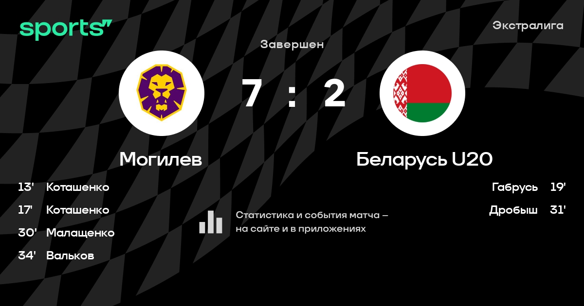 В прошедшем матче в рамках турнира Экстралига состоялась встреча команд Могилев - Беларусь U20 в городе Могилев (Беларусь) на стадионе Ледовый дворец спорта Могилев (вместимость - 3048)