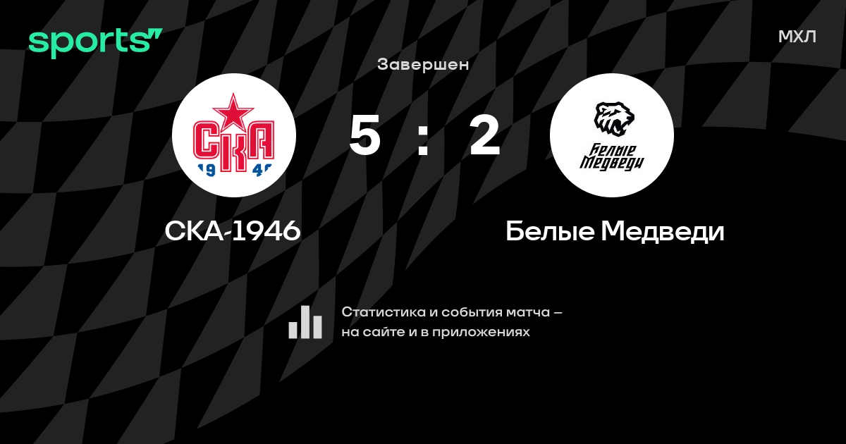 В прошедшем матче в рамках турнира МХЛ состоялась встреча команд СКА-1946 - Белые Медведи в городе Санкт-Петербург (Россия) на стадионе Ледовый дворец (вместимость - 13000) со счетом 5 : 2.