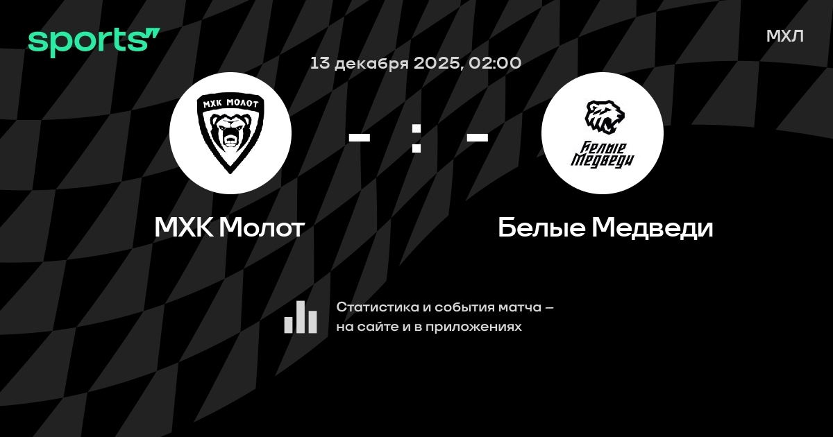 В предстоящем матче в рамках турнира МХЛ пройдет встреча команд МХК Молот - Белые Медведи в городе на стадионе Molot.