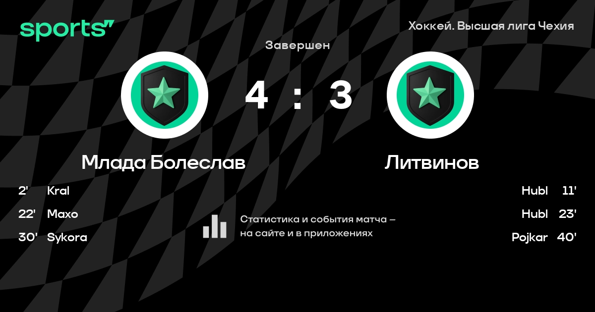 В прошедшем матче в рамках турнира Хоккей. Высшая лига Чехия состоялась встреча команд Млада Болеслав - Литвинов