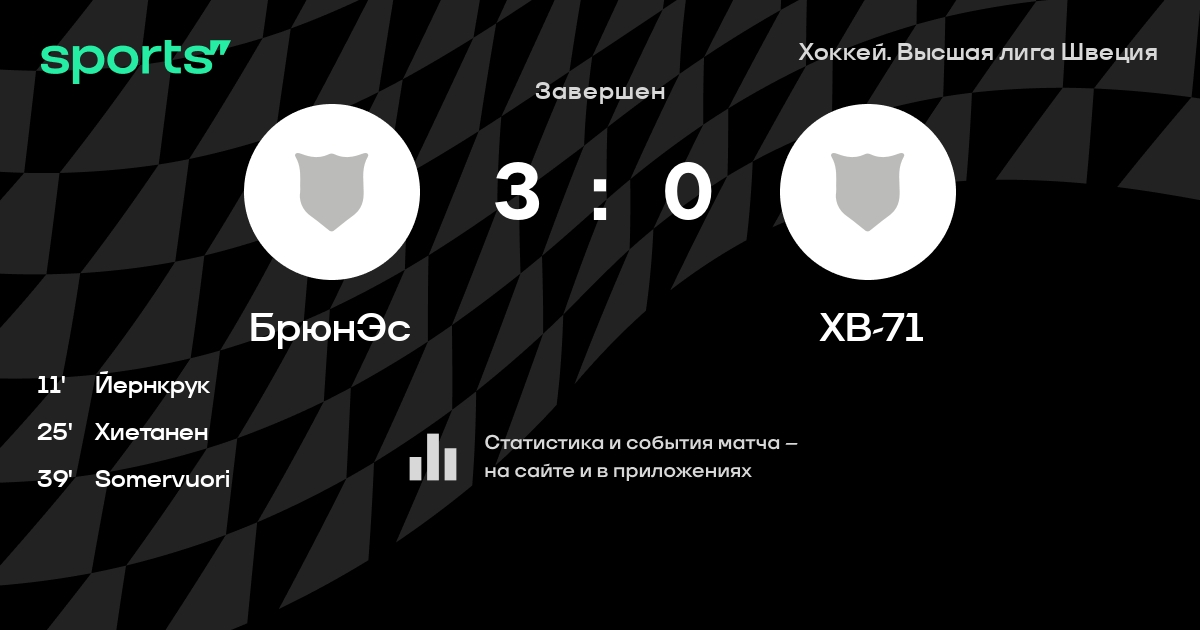 В прошедшем матче в рамках турнира Хоккей. Высшая лига Швеция состоялась встреча команд БрюнЭс - ХВ-71
