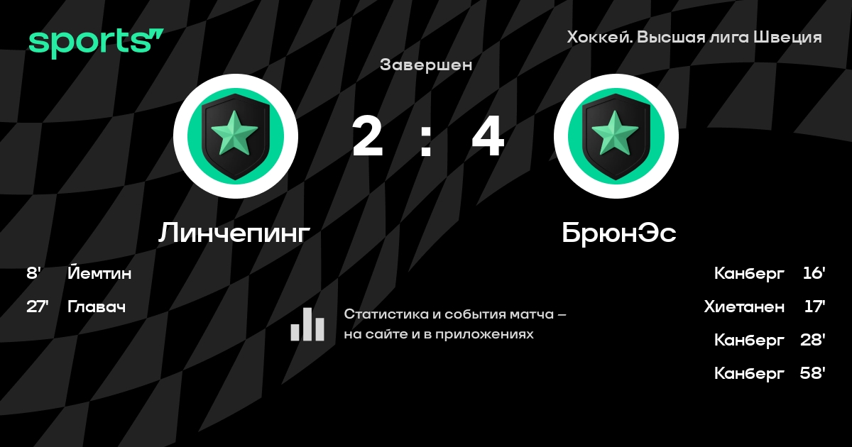 В прошедшем матче в рамках турнира Хоккей. Высшая лига Швеция состоялась встреча команд Линчепинг - БрюнЭс