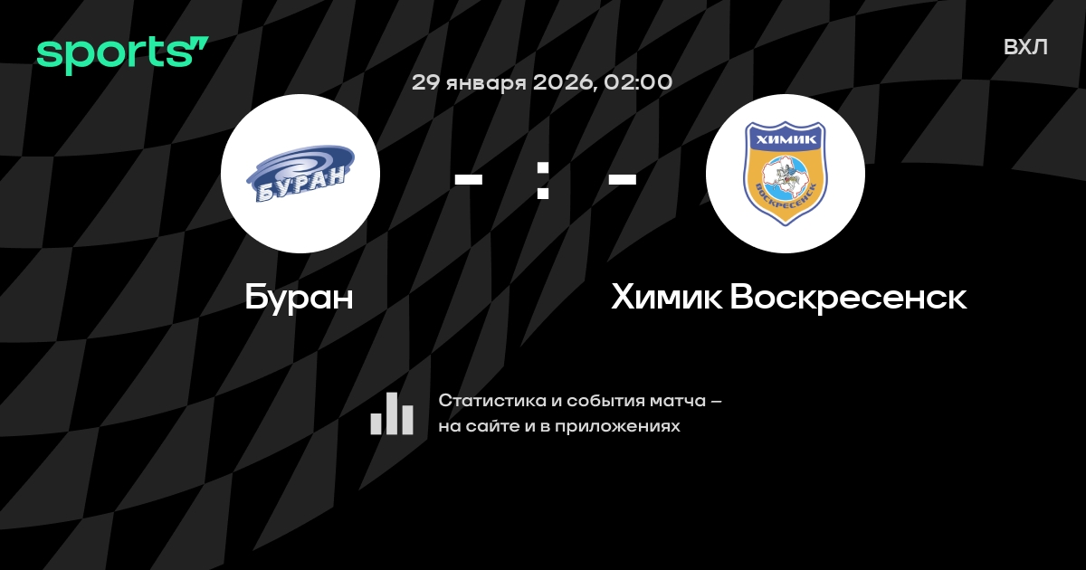 В предстоящем матче в рамках турнира ВХЛ пройдет встреча команд Буран - Химик Воскресенск в городе на стадионе Mau Sk Yubileynyy.