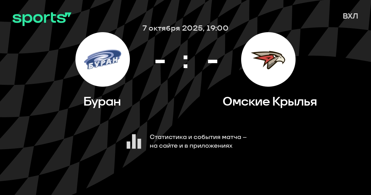 В предстоящем матче в рамках турнира ВХЛ пройдет встреча команд Буран - Омские Крылья в городе на стадионе Mau Sk Yubileynyy.