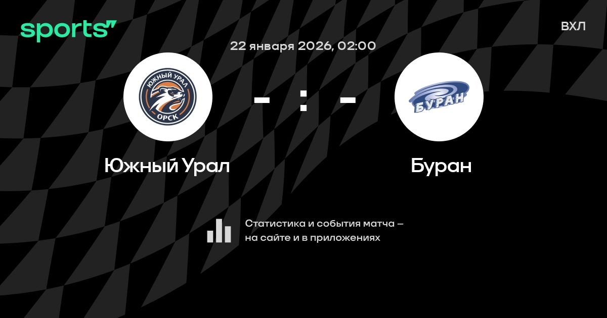 В предстоящем матче в рамках турнира ВХЛ пройдет встреча команд Южный Урал - Буран в городе на стадионе Ice Palace Yubileyny.