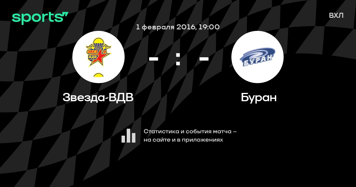 В предстоящем матче в рамках турнира ВХЛ пройдет встреча команд Звезда-ВДВ - Буран .